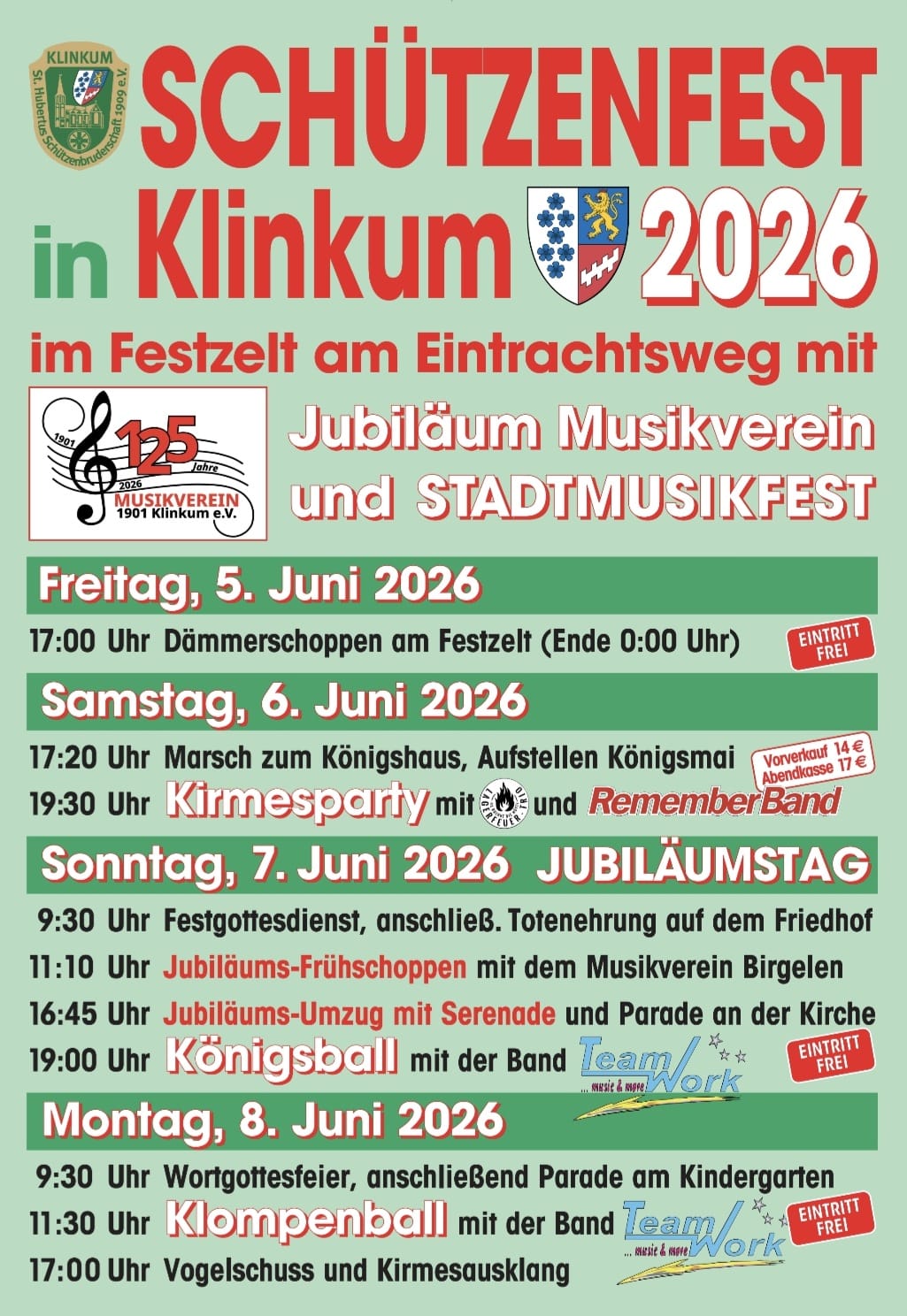 Wie gewohnt feiern wir im Festzelt an der Feuerwehr in Klinkum.